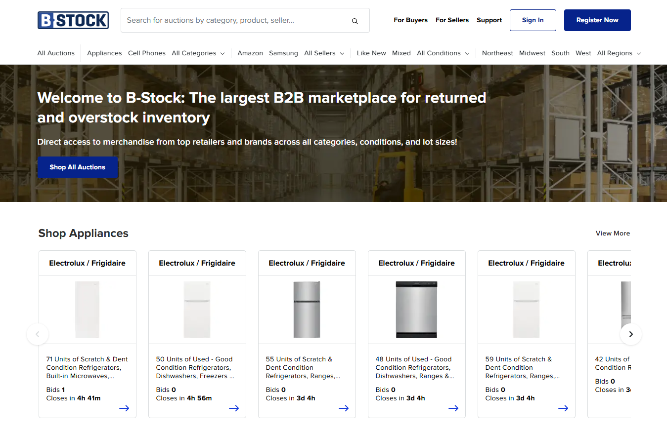 B-Stock specializes in a variety of products, notably electronics wholesale, home appliances, and apparel. As a liquidation auction platform, it offers items in bulk, catering to diverse business needs.